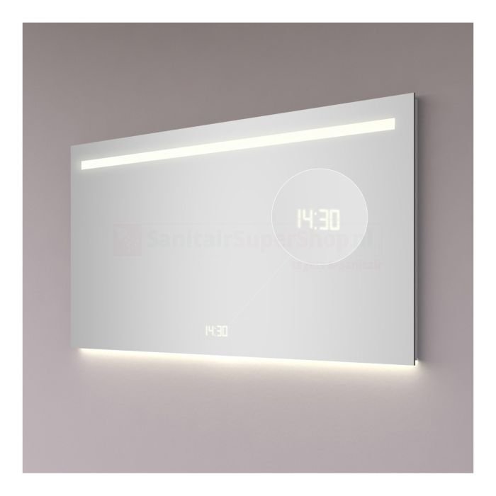 Badkamerspiegel Hipp Design met klok SPV5000 – 100×70 cm – Directe LED verlichting – Touch button – Met spiegelverwarming – SPV5030